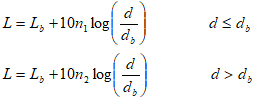 雙射線模式給出的路徑損耗被寫成為收發(fā)之間的距離d的函數,并且可以用兩個不同斜率n1 和n2 的直線段近似。兩線段之間的突變點也稱為拐點出現在離發(fā)射端的距離為: